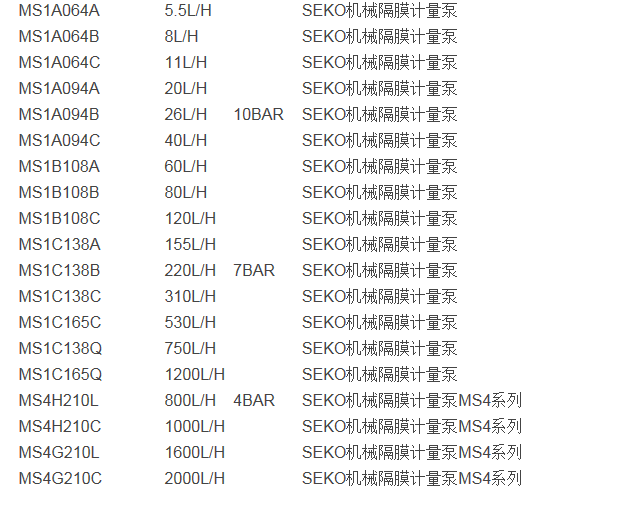 SEKO賽高M(jìn)S1系列機(jī)械隔膜計(jì)量泵