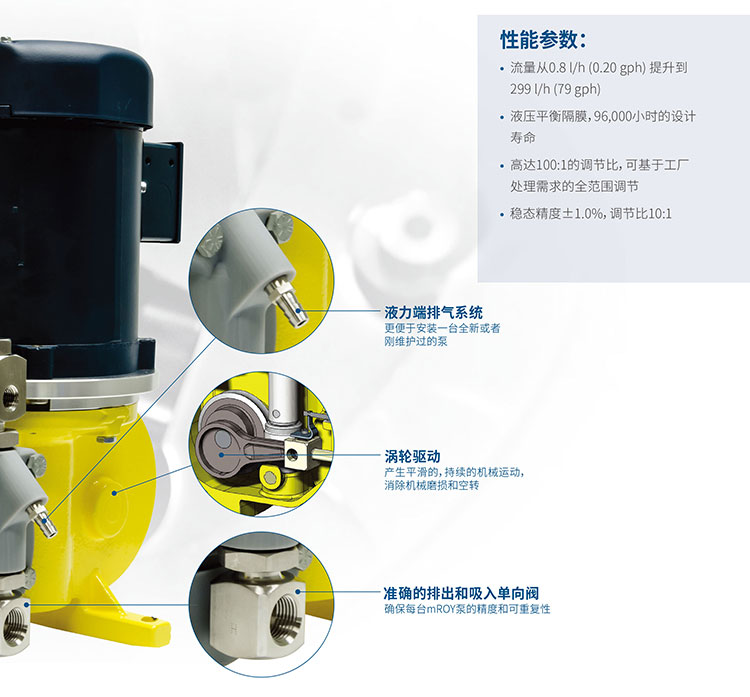 升級后的MROY計量泵改善了其部件的耐久性,易于組裝,且運行更、更安全、維修更簡單。