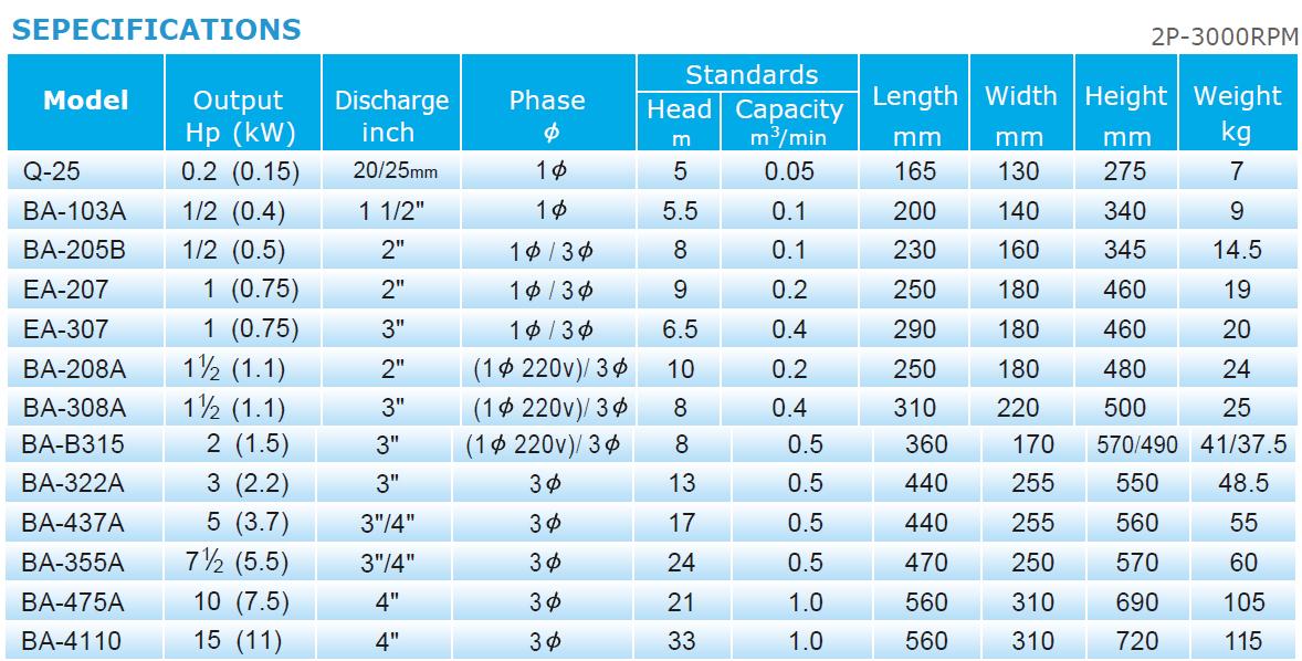 型號:松河BA系列水泵