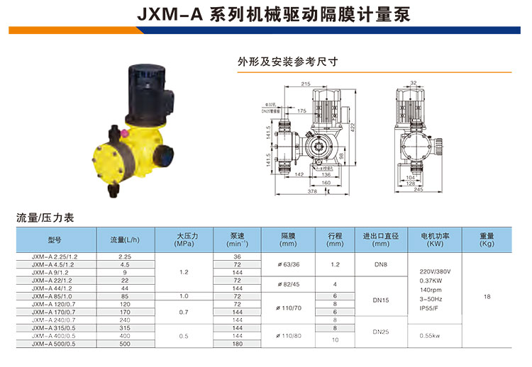 • 顏色分類: JXM-A2.25/1.2(PVC泵頭) JXM-A4.5/1.2(PVC泵頭) JXM-A9/1.2(PVC泵頭) JXM-A22/1.2(PVC泵頭) JXM-A44/1.2(PVC泵頭) JXM-A85/1.0(PVC泵頭) JXM-A120/0.7(PVC泵頭) JXM-A170/0.7(PVC泵頭) JXM-A240/0.7(PVC泵頭) JXM-A315/0.5(PVC泵頭) JXM-A400/0.5(PVC泵頭) JXM-A500/0.5(PVC泵頭)