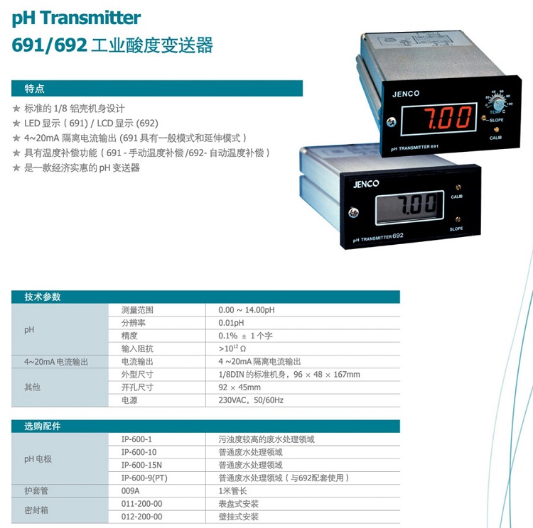 在線PH變送器692(套) JENCO/任氏工業(yè)PH酸度計 水質(zhì)在線分析儀