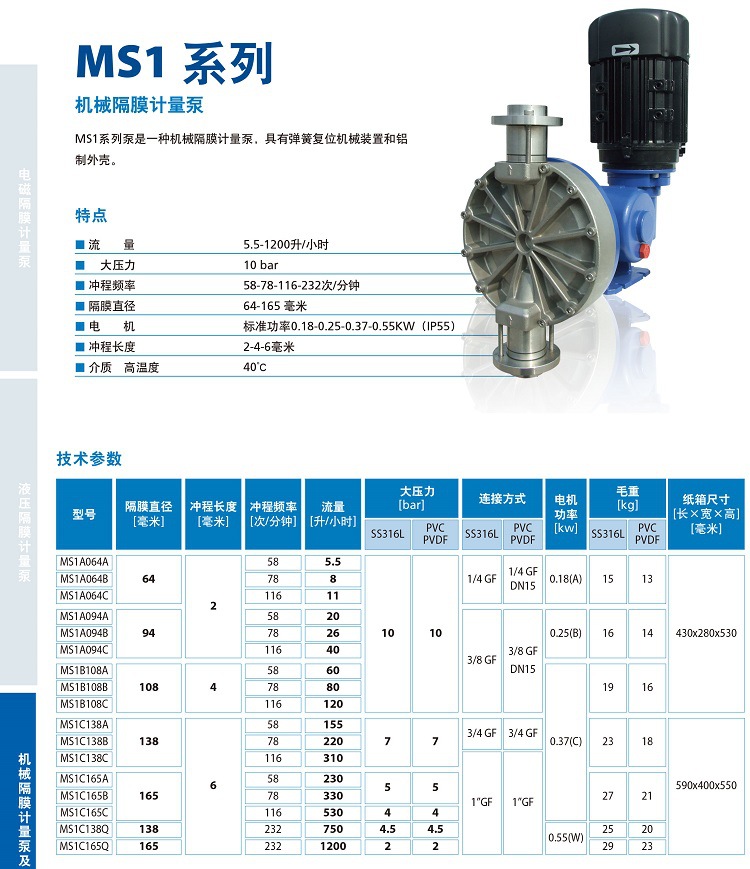 ( SEKO賽高) 機(jī)械隔膜計(jì)量泵MS1系列PVC泵頭耐酸堿耐腐蝕泵泵頭可選