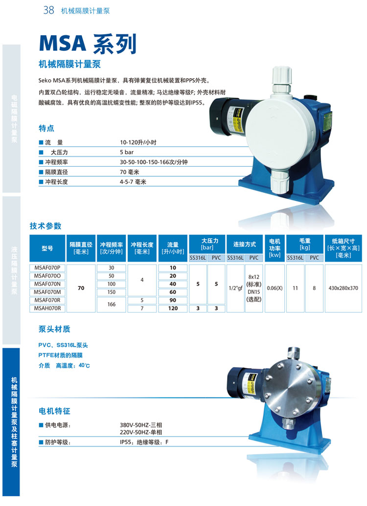 • (SEKO賽高) MSA系列PVC/不銹鋼泵頭