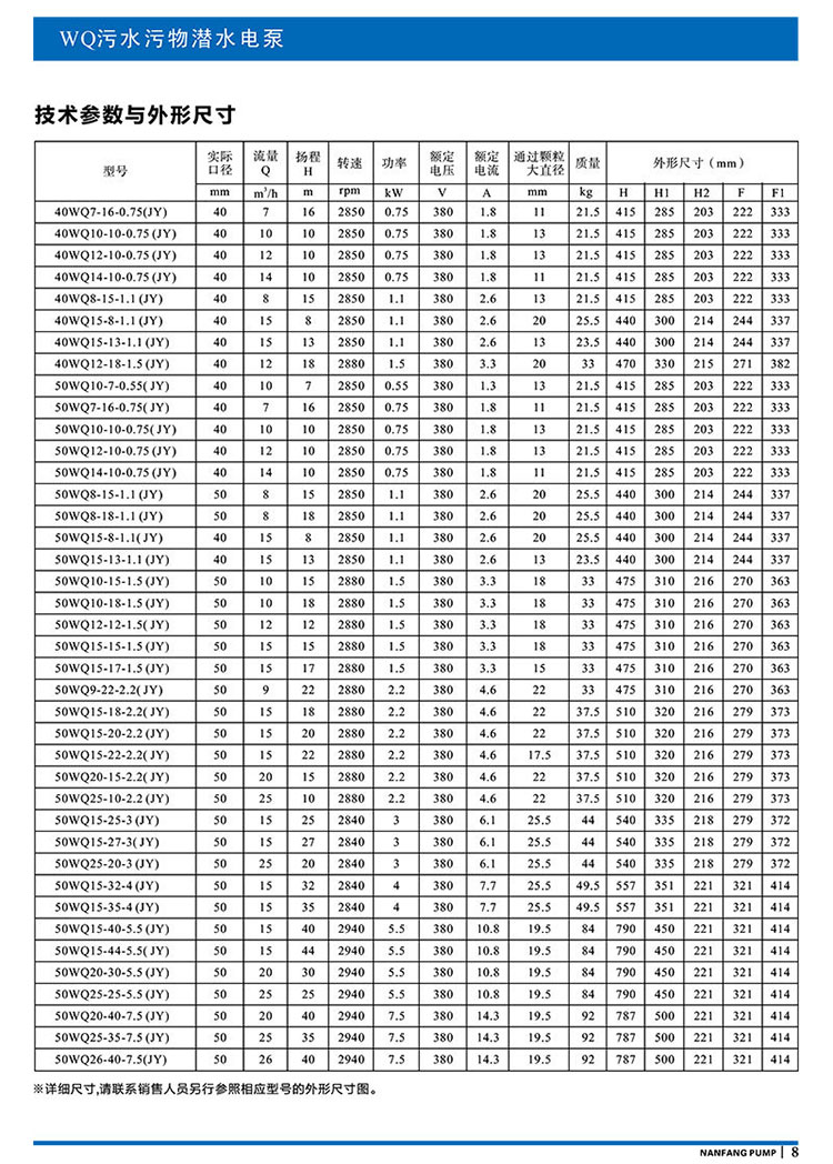 型號:50WQ20-15-2.2(JY)