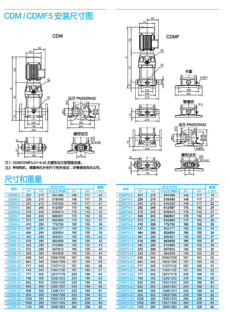 南方CDM/CDMF系列輕型立式多級離心泵