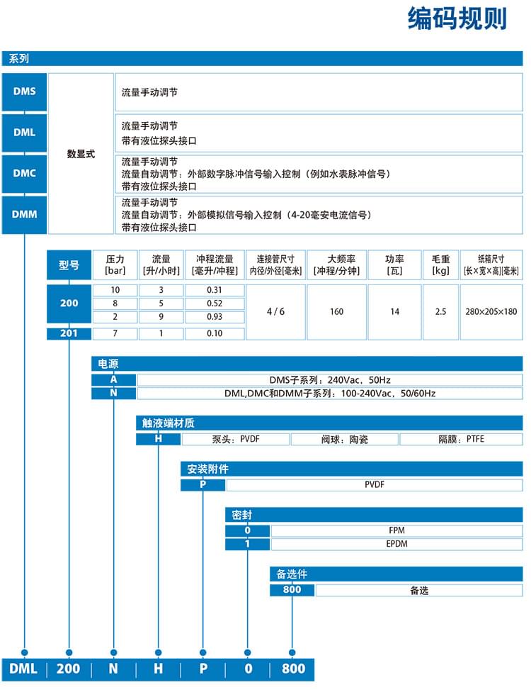 大壓力:10bar; 大流量:9升/小時;泵頭材質(zhì):PVDF