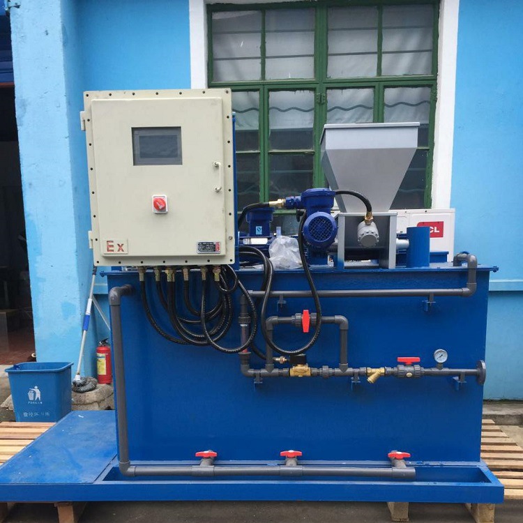 防爆干粉投加裝置- 高分子泡藥機能自動按水處理技術要求自動準確、定量投加水處理藥劑,如:循環(huán)水處理的阻垢劑、緩蝕劑、消毒殺菌劑,水凈化處理的混凝劑、助凝劑,污水處理中的營養(yǎng)劑、絮凝劑,污泥處理中的脫水劑等等。全自動加藥裝置適用于各種規(guī)模的水處理裝置,如水量從每小時數(shù)百噸至數(shù)萬噸的循環(huán)水系統(tǒng)。