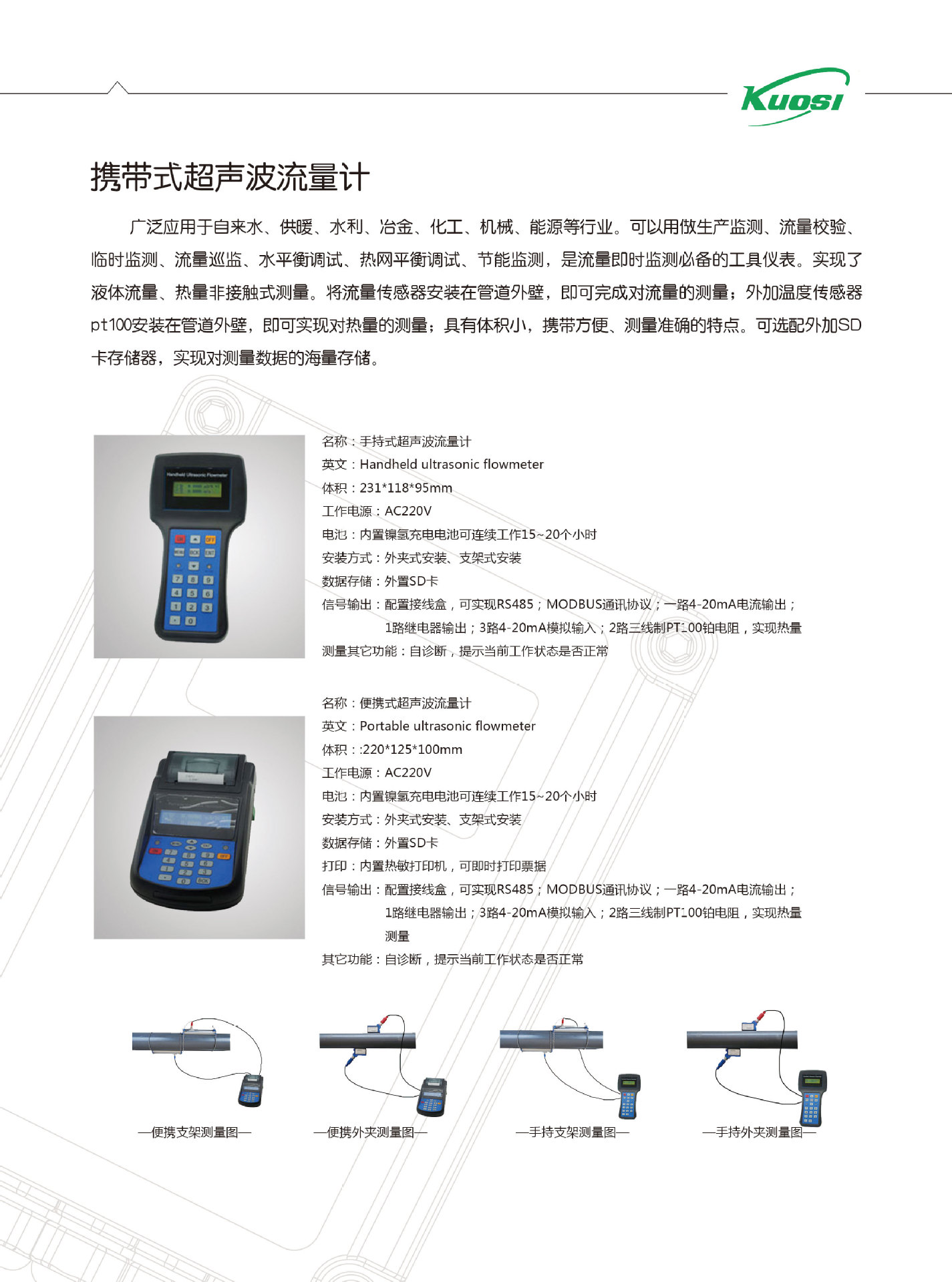 • 便攜式超聲波流量計水手持式管道式管壁外夾式液體傳感器