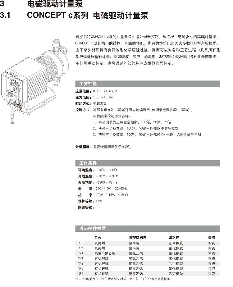 • Prominent普羅名特計(jì)量泵CONC0803型 耐化學(xué)腐蝕工程塑料電磁加藥泵雜質(zhì)泵