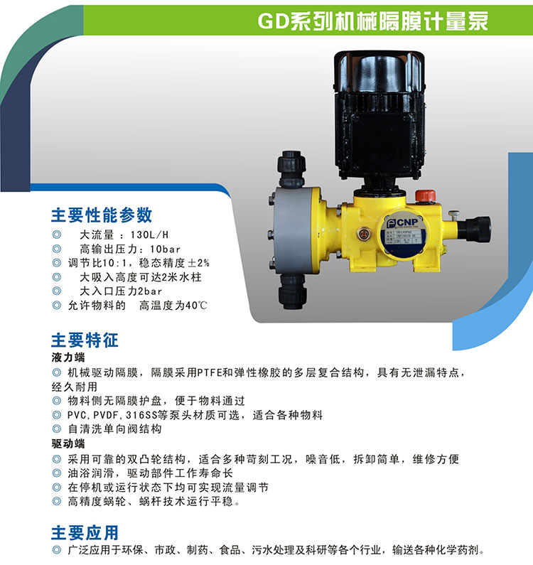 計(jì)量泵GD系列性能及優(yōu)點(diǎn)