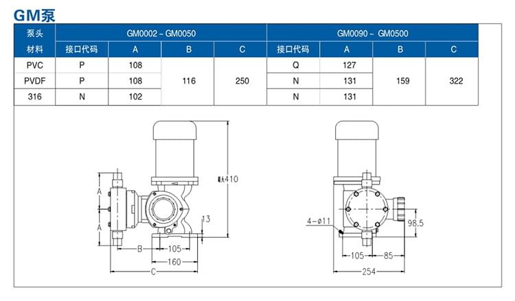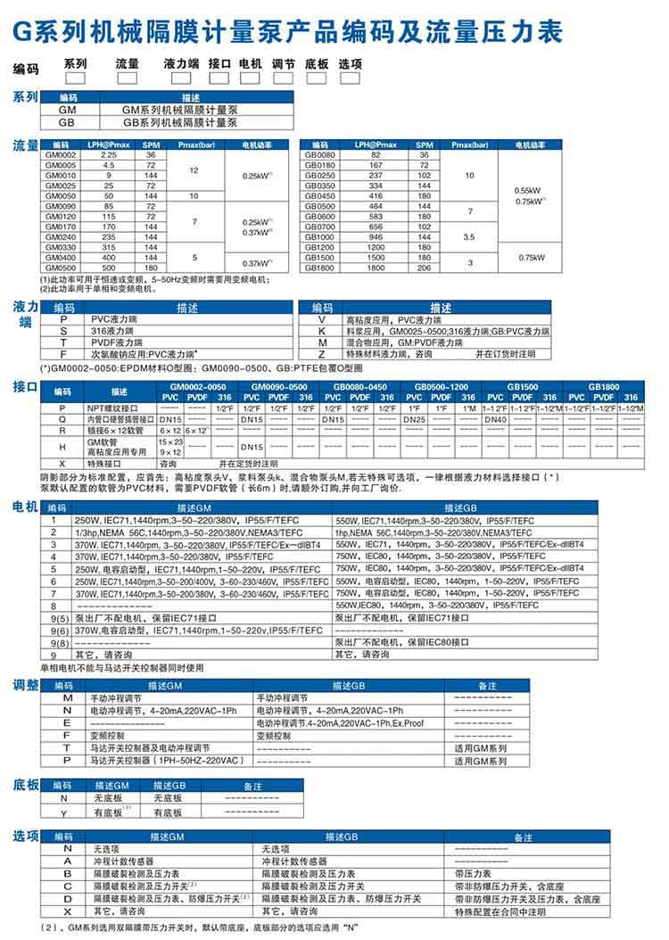 GM型機(jī)械隔膜計(jì)量泵】PVC泵頭加藥泵主要性能參數(shù)