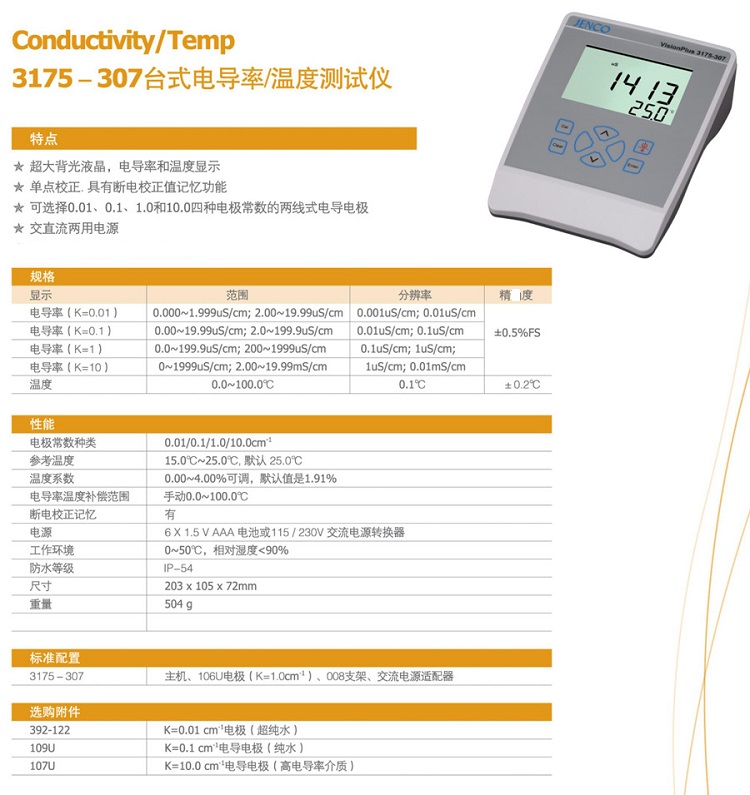 電導(dǎo)/TDS計3175-307型 JENCO/任氏臺式大屏基礎(chǔ)實驗溫度測試儀