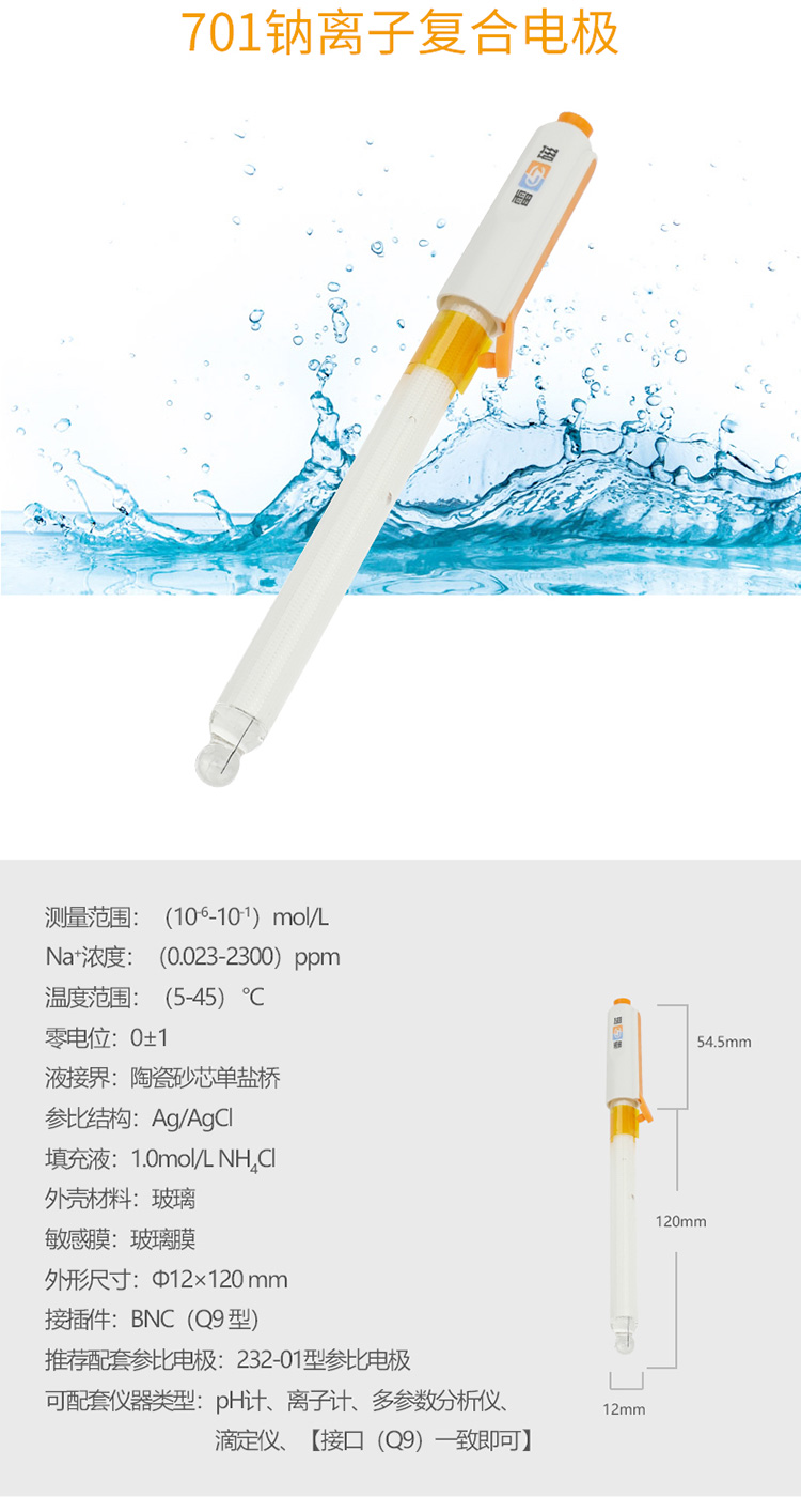 701型鈉離子復(fù)合電極 雷磁實(shí)驗(yàn)離子選擇性電極 傳感器探頭
