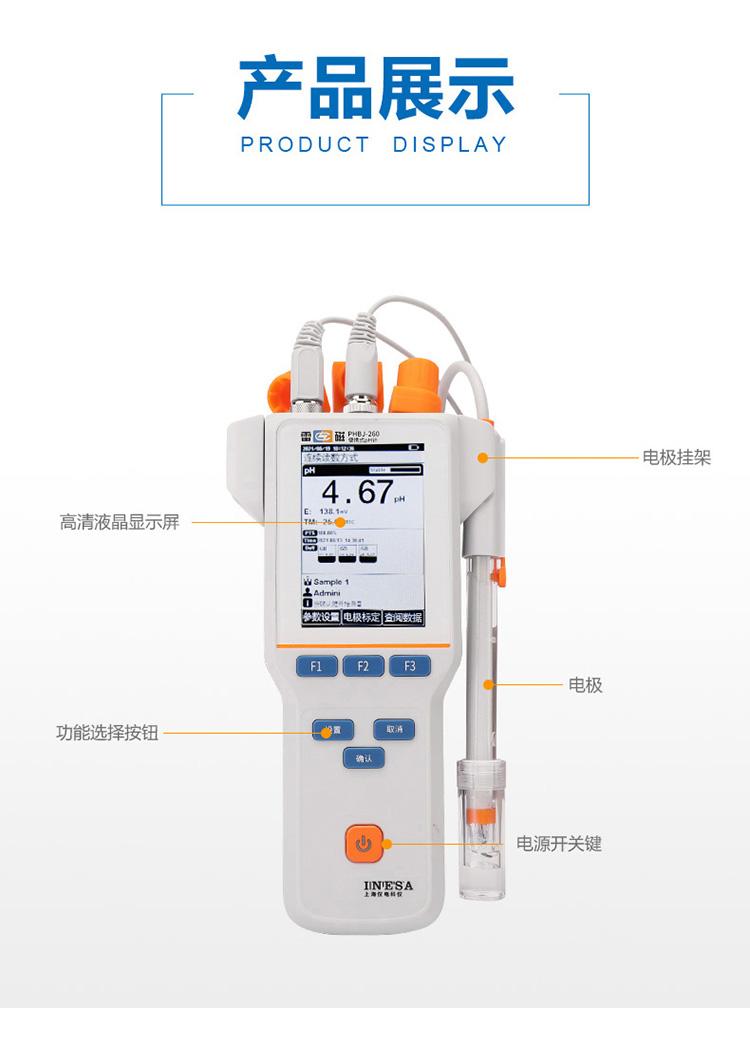 雷磁PHBJ-260型便攜式PH計標配數(shù)顯手動自動溫度補償PH檢測儀表