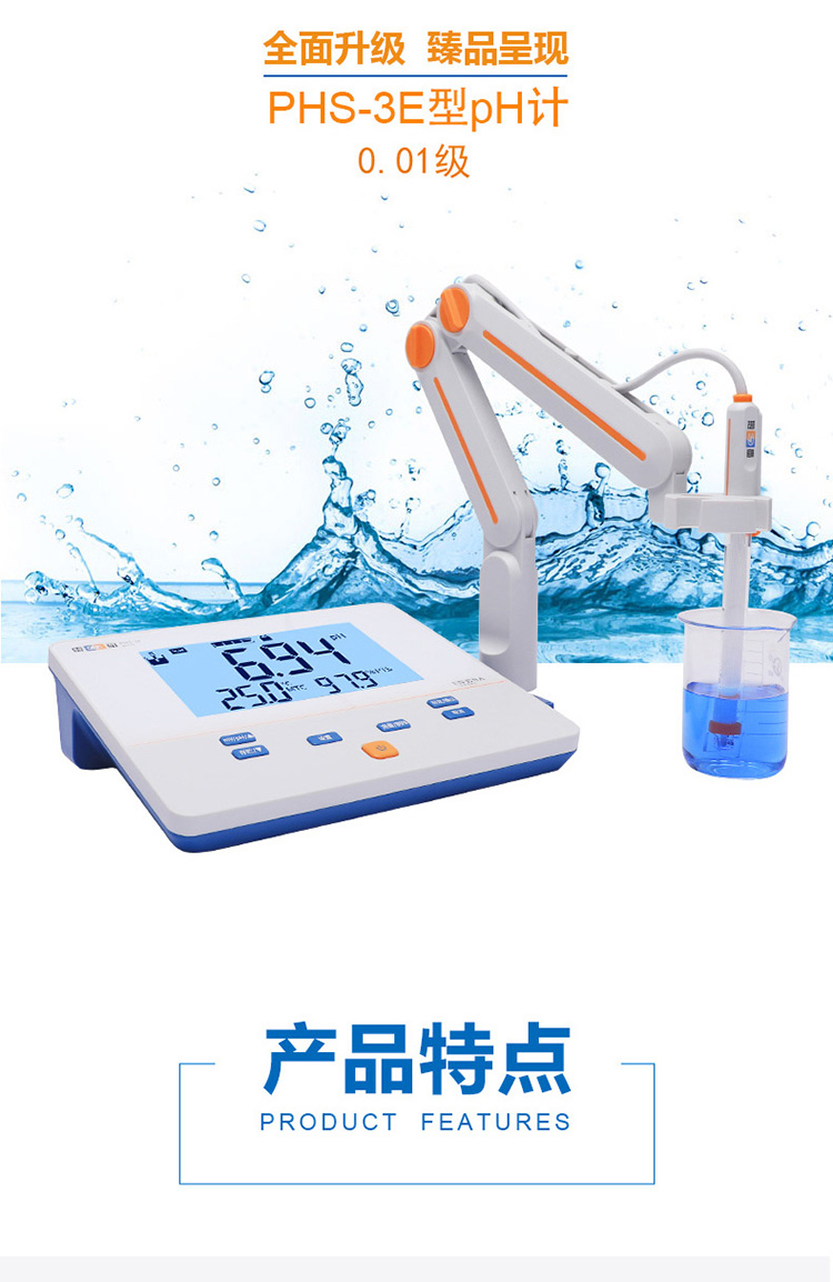 雷磁PHS-3E型實(shí)驗(yàn)室PH計(jì)標(biāo)配套裝手動(dòng)自動(dòng)溫補(bǔ)ph測(cè)試儀臺(tái)式酸度計(jì)