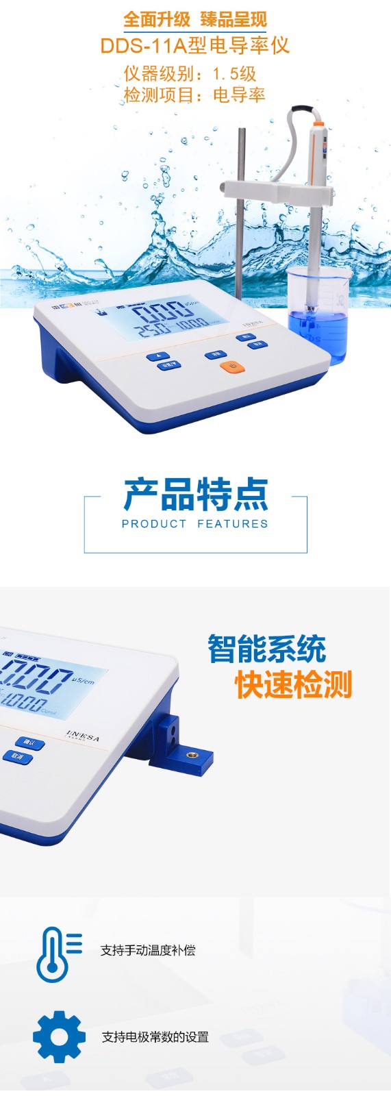 • 雷磁DDS-11A電導(dǎo)率儀智能系統(tǒng)手動(dòng)溫度補(bǔ)償電導(dǎo)率測(cè)試儀電導(dǎo)儀