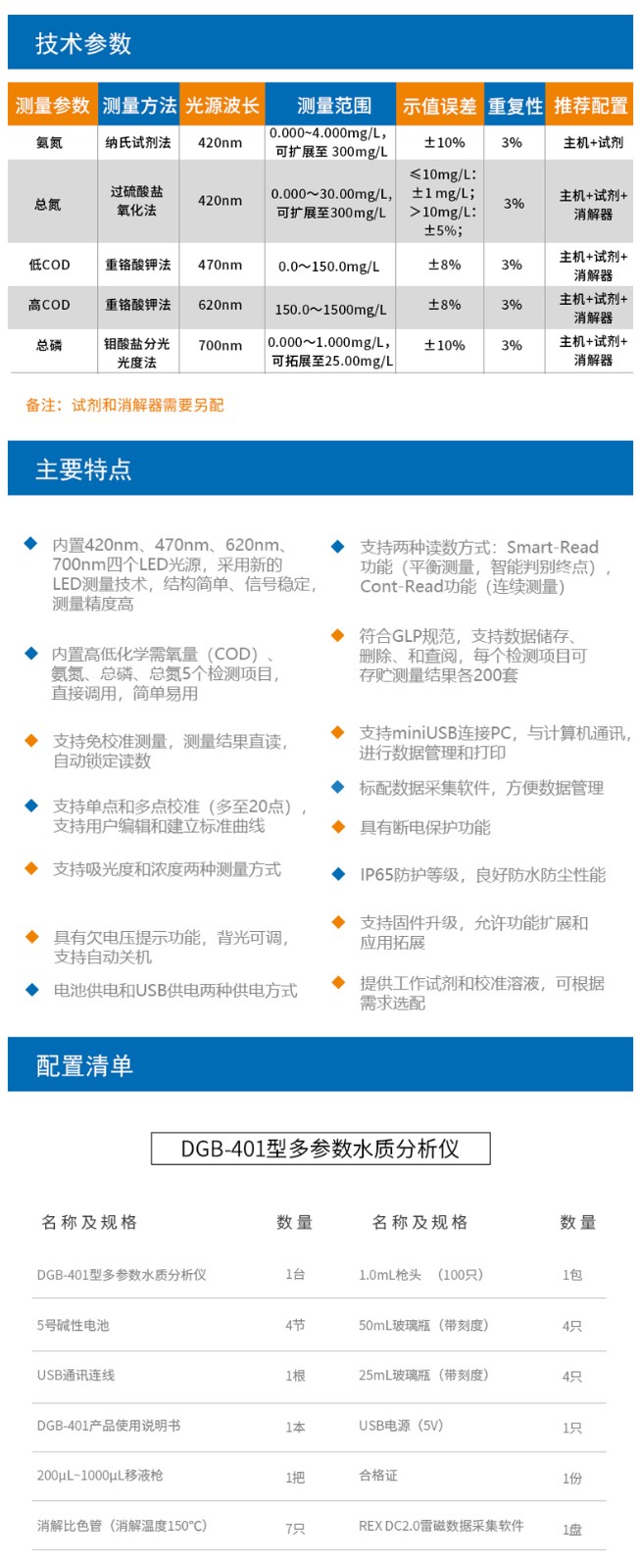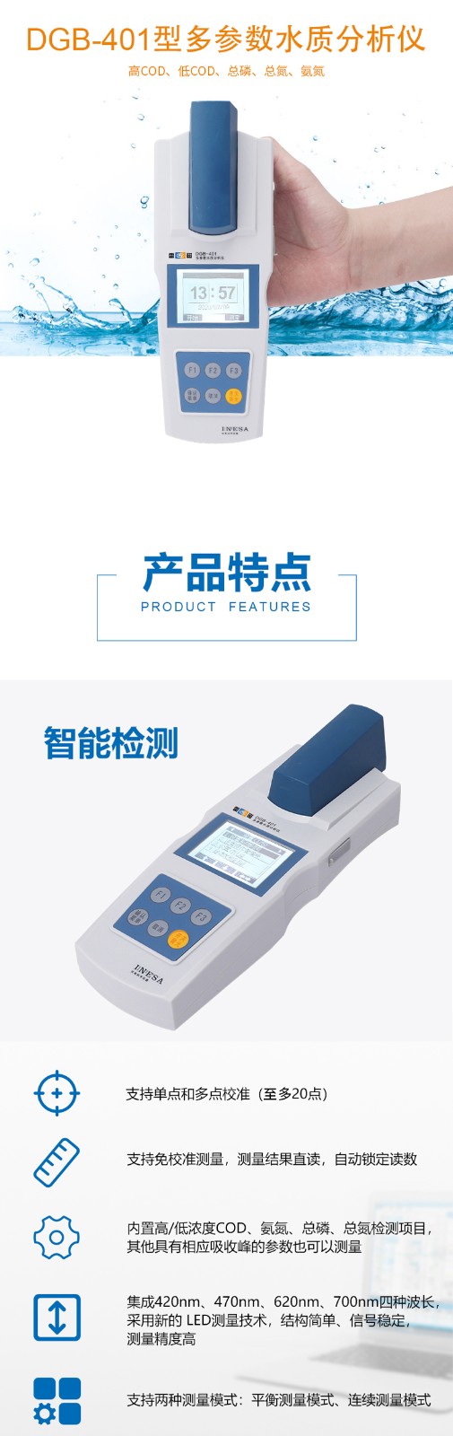 • 上海雷磁DGB-401多參數(shù)水質(zhì)分析儀COD總氮總磷氨氮測定儀測試儀