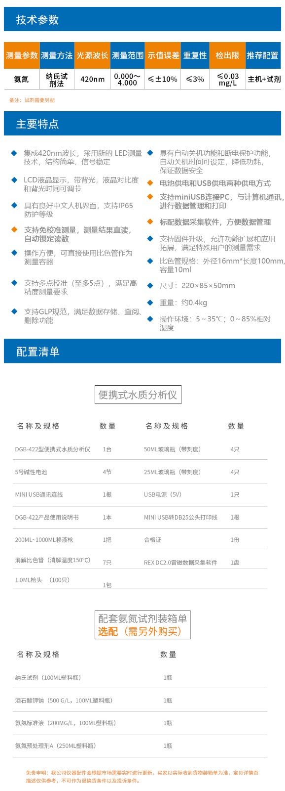 • 上海雷磁DGB-422便攜式水質(zhì)測(cè)定儀免校準(zhǔn)測(cè)量氨氮檢測(cè)儀測(cè)定儀