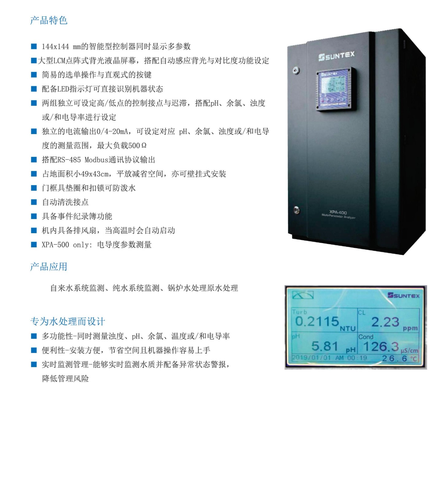 • SUNTEX水質(zhì)四參數(shù)/五參數(shù)分析儀 XPA-400 XPA-500