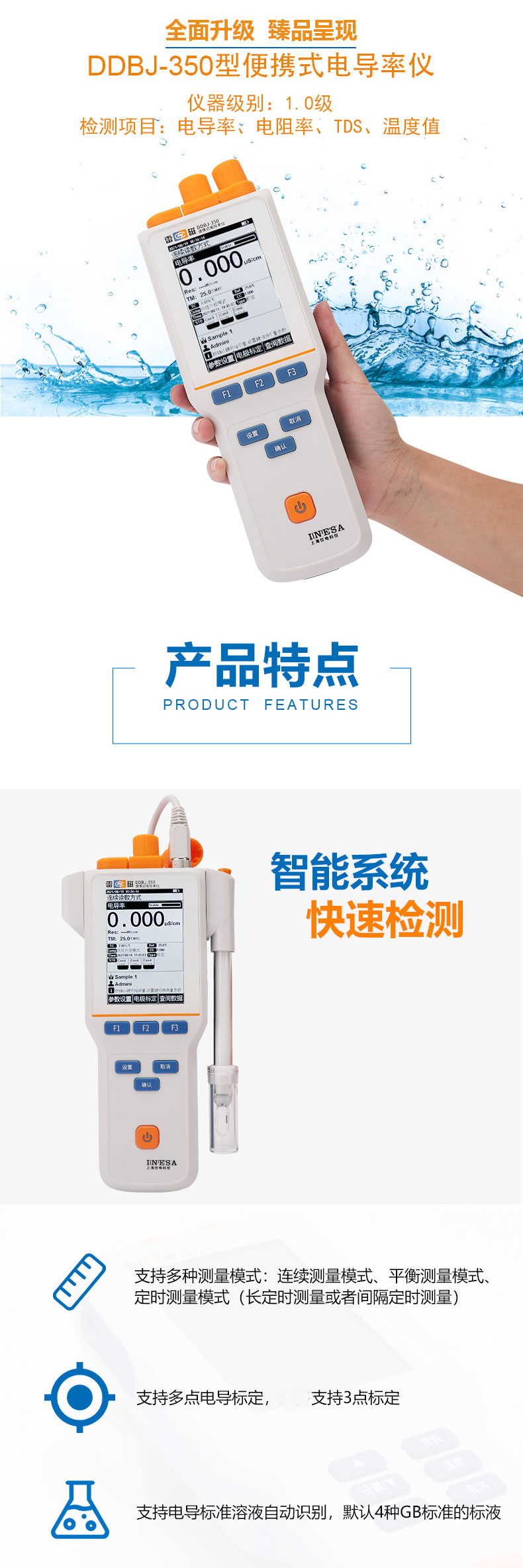 雷磁(leici)DDBJ-350型便攜式電導(dǎo)率儀自動(dòng)手動(dòng)溫度補(bǔ)償電導(dǎo)率監(jiān)測(cè)儀