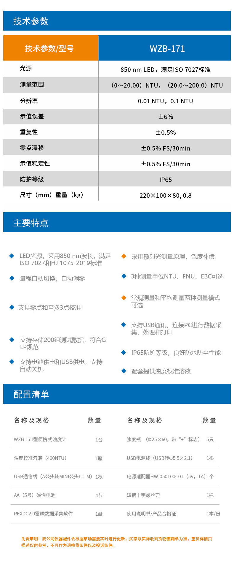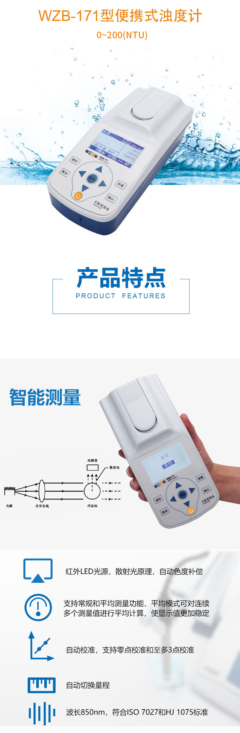 • 雷磁(leici)濁度儀WZB-171型便攜式濁度計(jì)分析儀標(biāo)準(zhǔn)套裝LED光源自動(dòng)調(diào)零