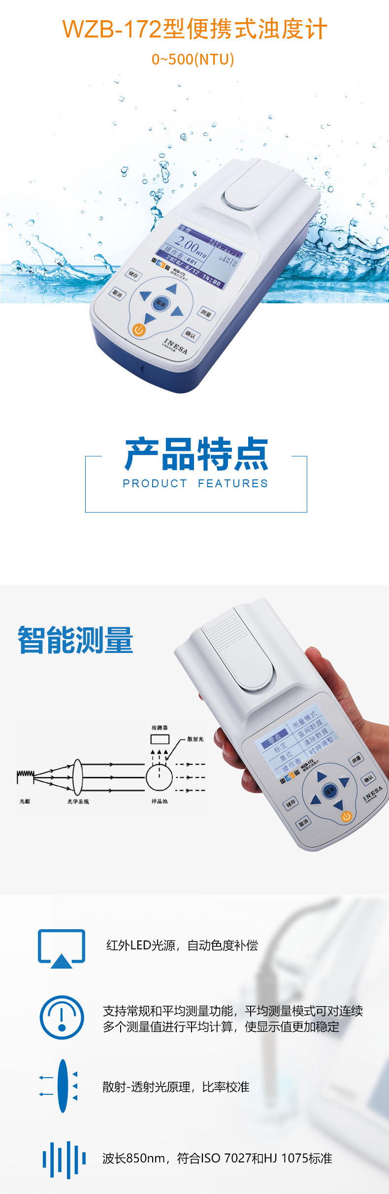 • 雷磁(leici) WZB-172型便攜式濁度計標(biāo)準(zhǔn)自動色度補償水質(zhì)分析儀濁度儀
