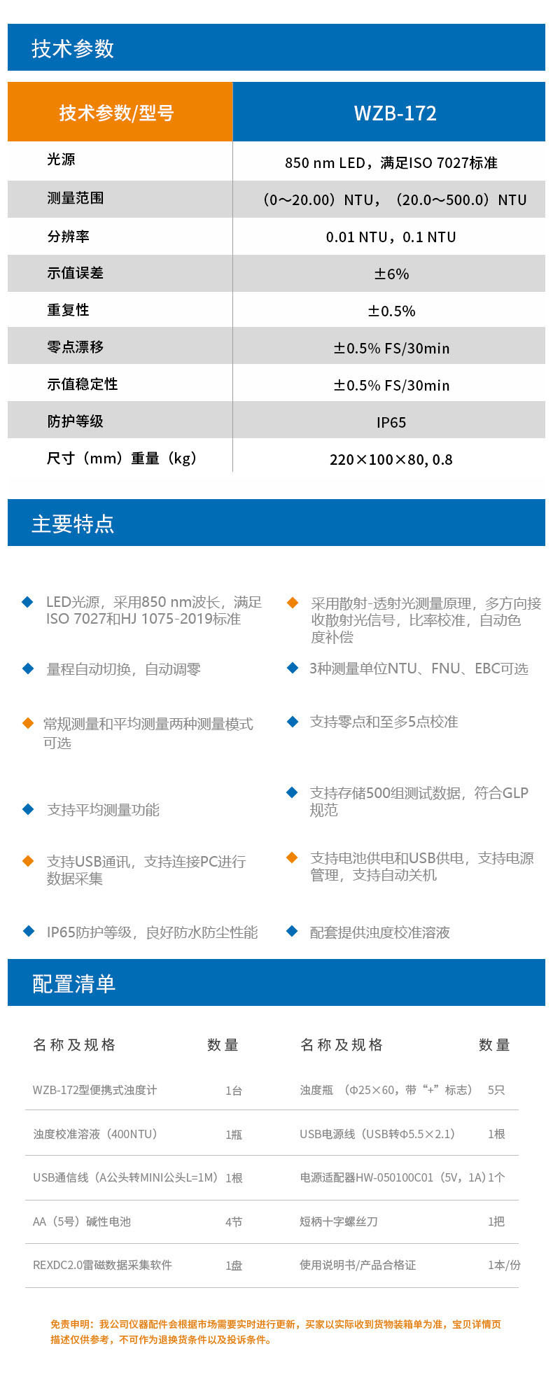 雷磁(leici) WZB-172型便攜式濁度計標(biāo)準(zhǔn)自動色度補償水質(zhì)分析儀濁度儀