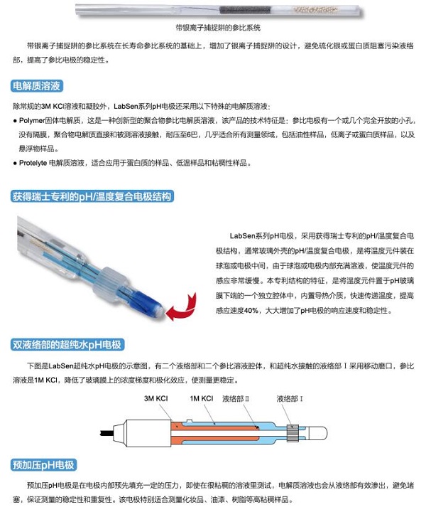 三信LabSen851-1粘稠樣品ph計電極特點:三陶瓷砂芯;Protelyte 參比溶液;帶銀離子捕捉阱的參比系統(tǒng),避免硫化銀或蛋白質(zhì)阻塞污染液絡(luò)部。