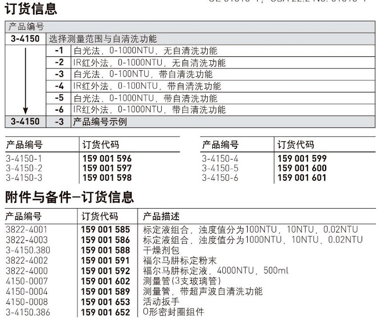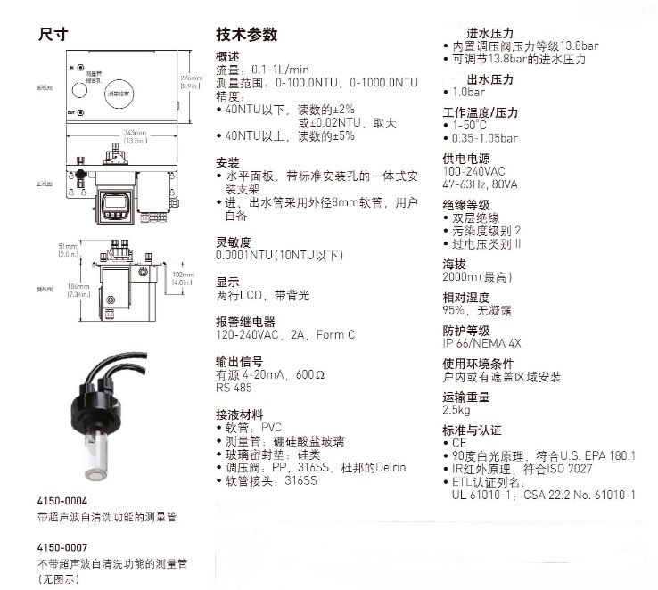 濁度儀3-4150-1 0-1000NTU,無(wú)超聲波自清洗功能