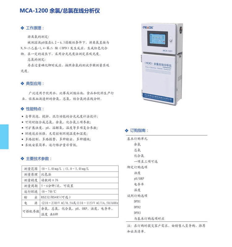 DPD法小量程余氯在線(xiàn)分析儀MCA-1200技術(shù)參數(shù)
