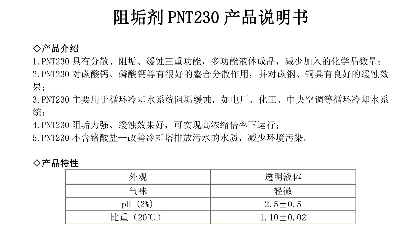 • PNT230具有分散、阻垢、緩蝕三重功能高效復(fù)合配方阻垢劑