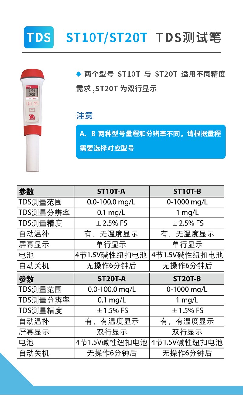 • 奧豪斯水質(zhì)測試筆ST系列便攜式多參數(shù)/PH/ORP/電導(dǎo)率/TDS/鹽度/溶解氧水質(zhì)測試儀