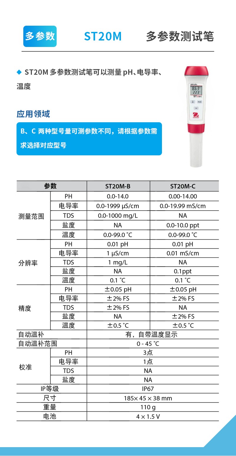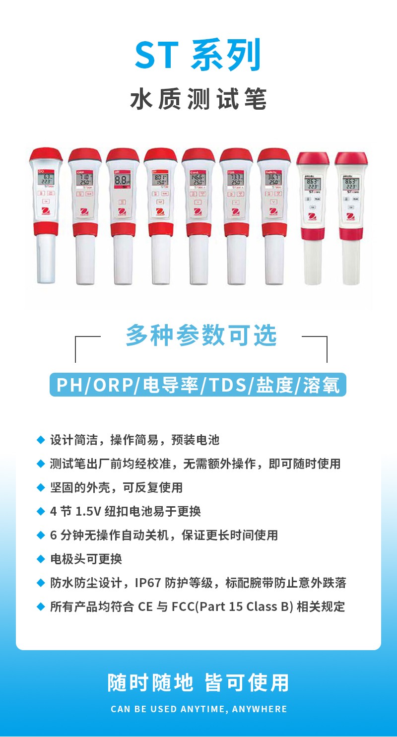 奧豪斯水質(zhì)測試筆ST系列便攜式多參數(shù)/PH/ORP/電導(dǎo)率/TDS/鹽度/溶解氧水質(zhì)測試儀
