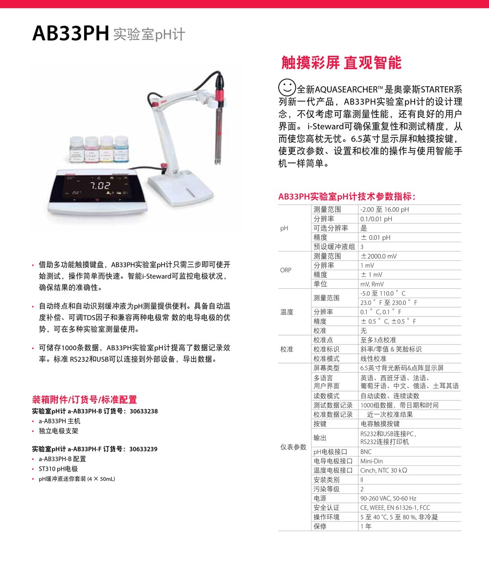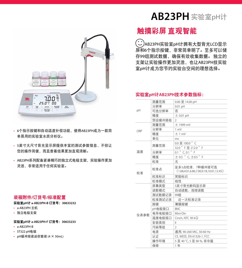 奧豪斯實(shí)驗室pH計AB41PH/AB33PH/AB23PH智能酸度計測試儀ph測定儀