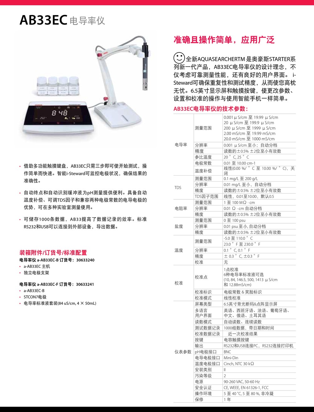 奧豪斯電導率儀AB33EC實驗室電導率測試儀AB23EC數(shù)顯電導率分析儀