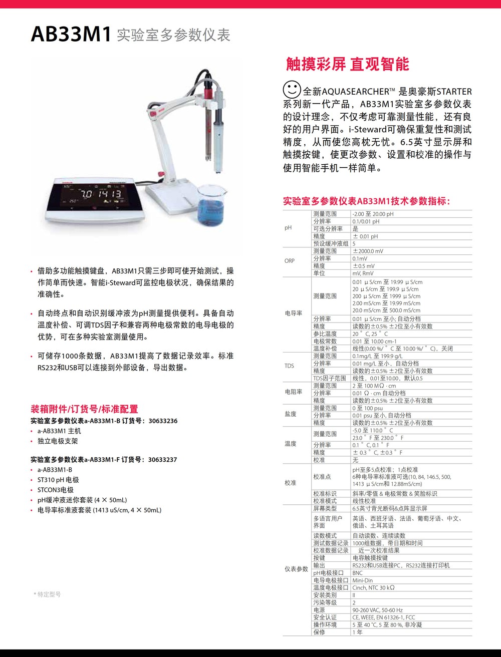 • 奧豪斯實(shí)驗(yàn)室多參數(shù)儀表AB33M1智能ph電導(dǎo)率ORP多參數(shù)水質(zhì)分析儀