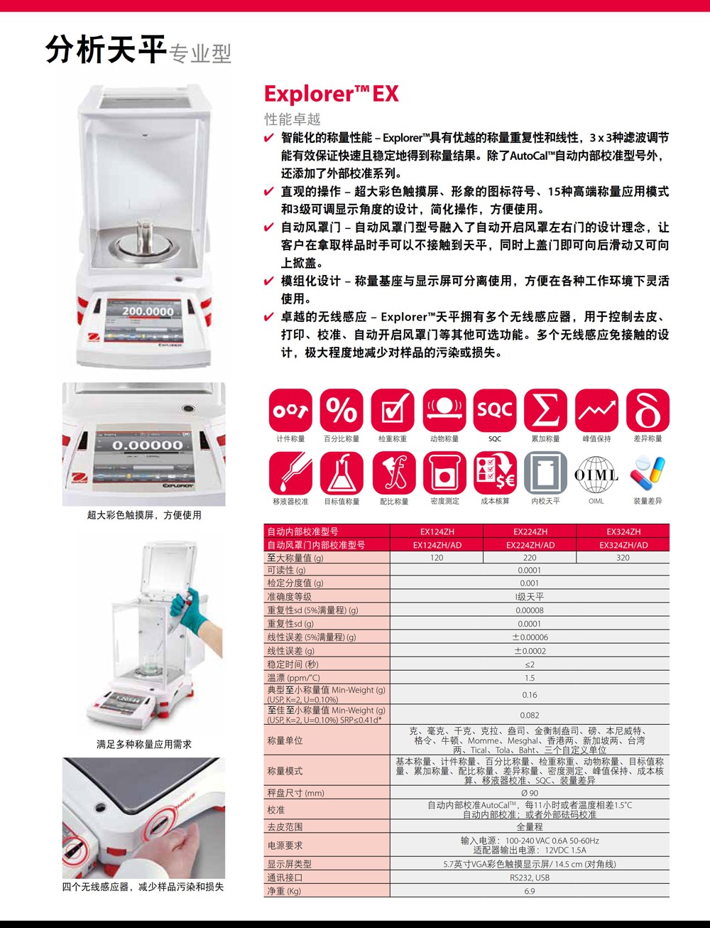 奧豪斯ExplorerEX系列分析天平實(shí)驗(yàn)室電子稱準(zhǔn)微量精密大稱量天平