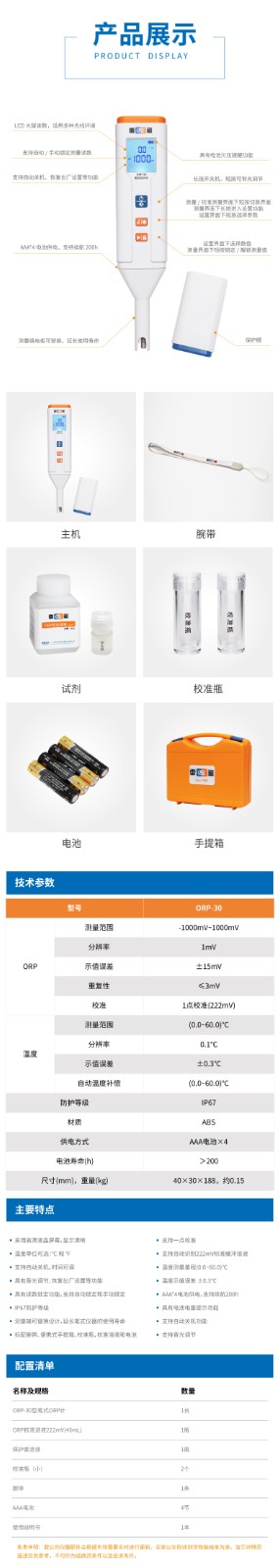 • 【雷磁】筆式ORP計水質(zhì)檢測儀ORP-30
