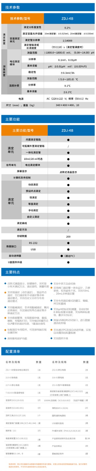 • 【雷磁】ZDJ-4B自動電位滴定儀 實驗室院校科研機構化學成分分析