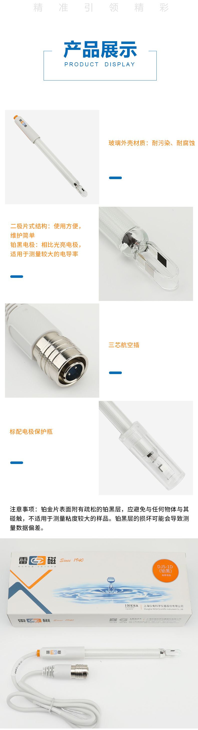 • 【雷磁】實驗室電導率傳感器 DJS-1D型電導電極(鉑黑)