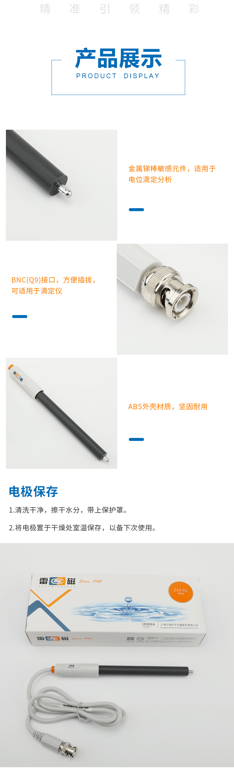• 【雷磁】 金屬電極探頭傳感器 鉑銀銻鎢雙鉑 214-01銻