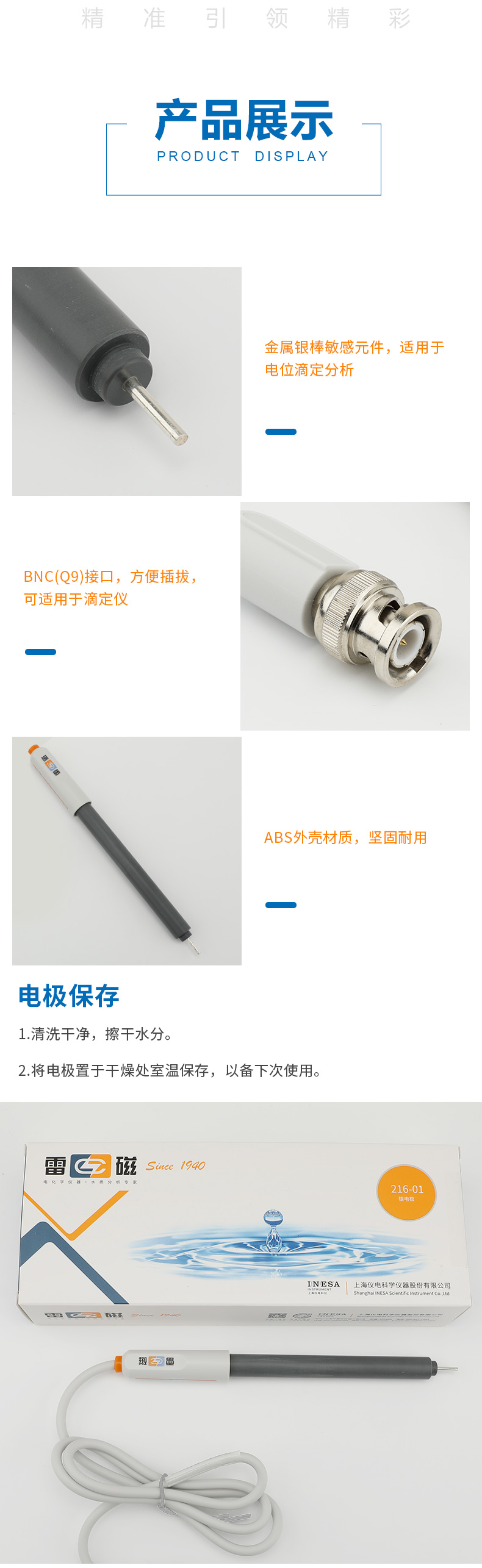 • 【雷磁】 金屬電極探頭傳感器 鉑銀銻鎢雙鉑 216-01銀