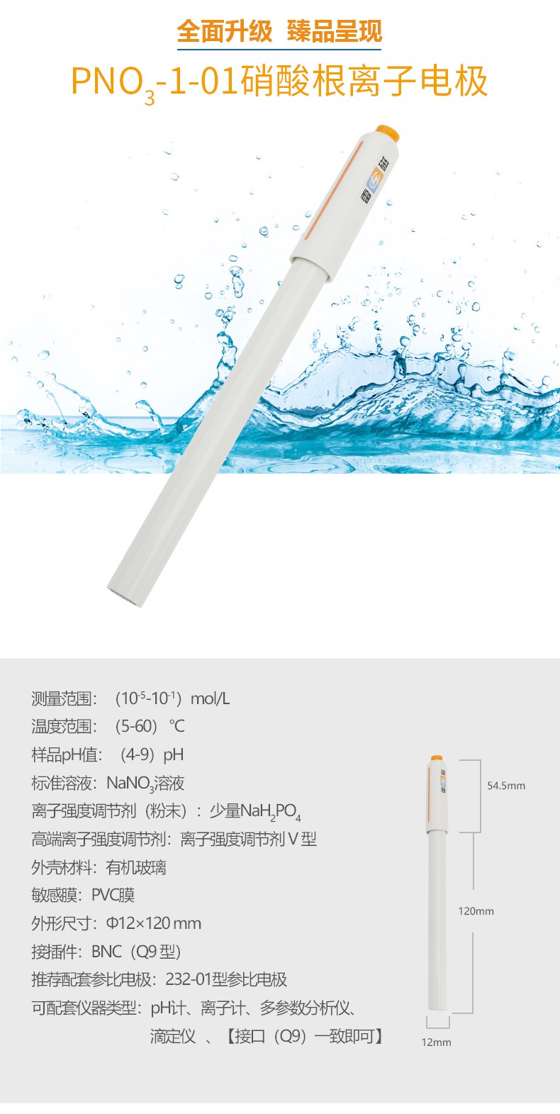 【雷磁】離子計(jì)復(fù)合電極探頭 PNO3-1-01型硝酸根離子電極