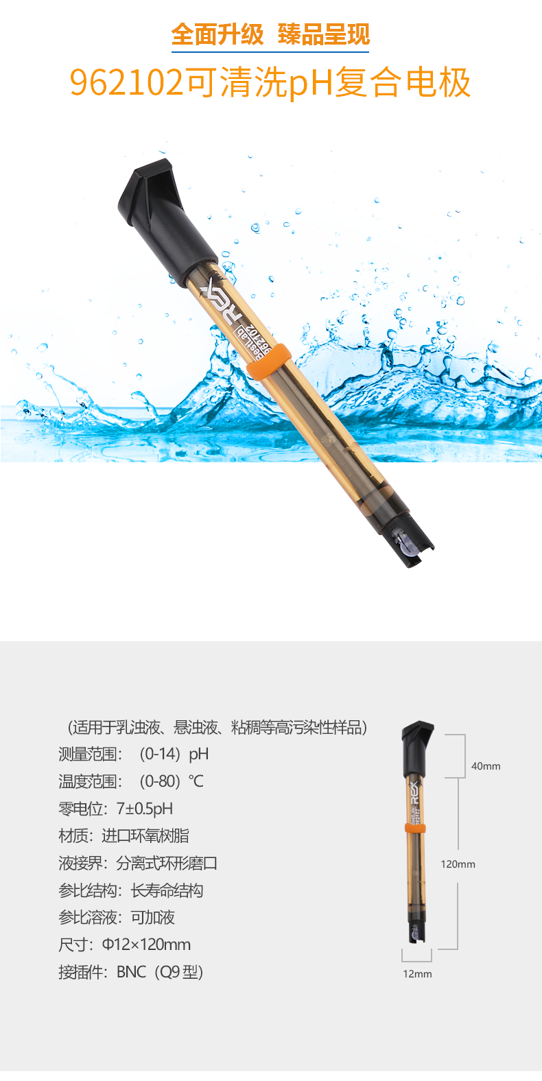 • 【雷磁】雷磁高端ph電極高精度 962102可清洗ph復(fù)合電極
