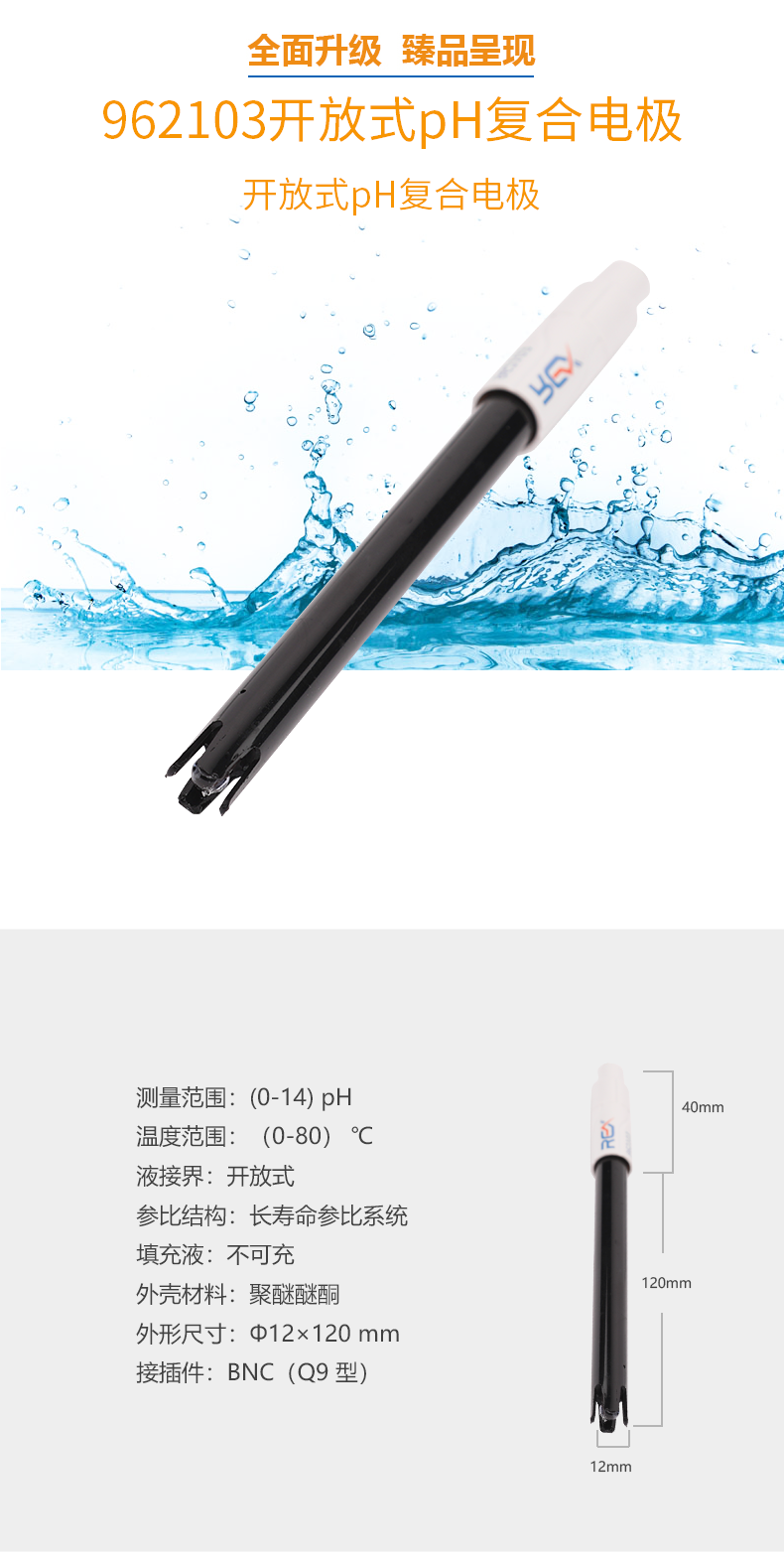 • 【雷磁】雷磁高端ph電極 962103開(kāi)放式ph復(fù)合電極