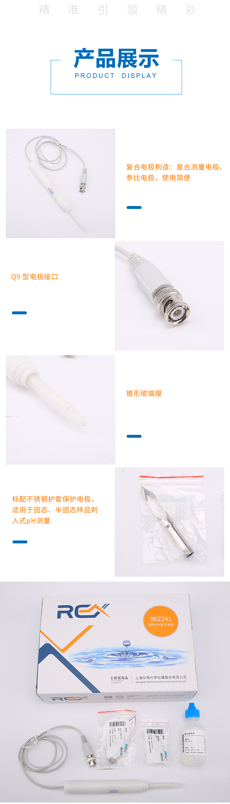 • 【雷磁】高端ph電極高精度 962241錐形ph復(fù)合電極