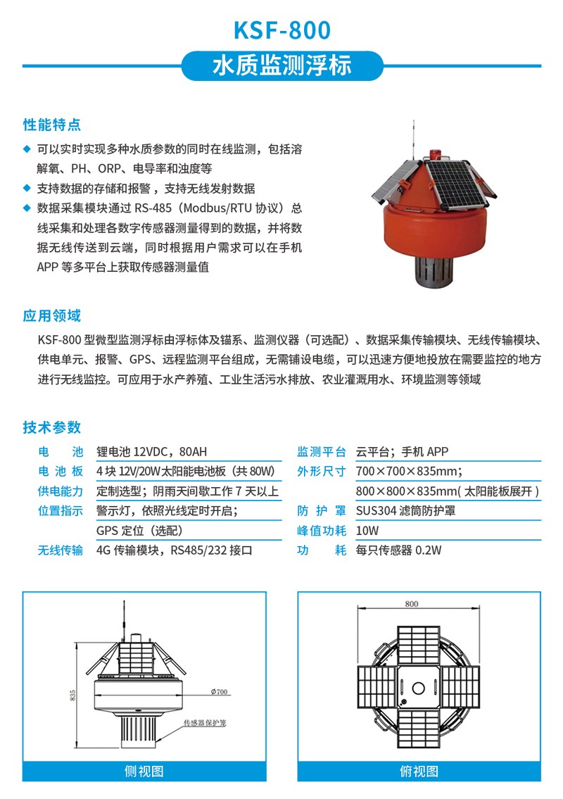 • Apure水質監(jiān)測浮標KSF-800水產(chǎn)養(yǎng)殖河道多參數(shù)水質在線檢測傳感器