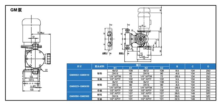 【米頓羅機械隔膜泵】隔膜式計量泵GM0050PQ1MNN
