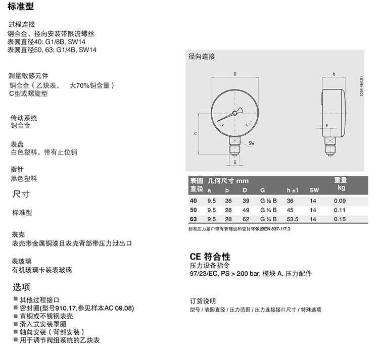 2. 膜片壓力表,化學(xué)工業(yè)型,表頭不充液/充液,高過壓保護壓力表,針對UHP應(yīng)用:422.12 432.50 432.56 423.36 423.25