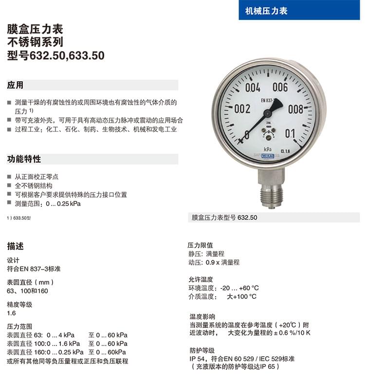 • 不銹鋼膜盒壓力表632.50.63/632.50.100/632.50.160